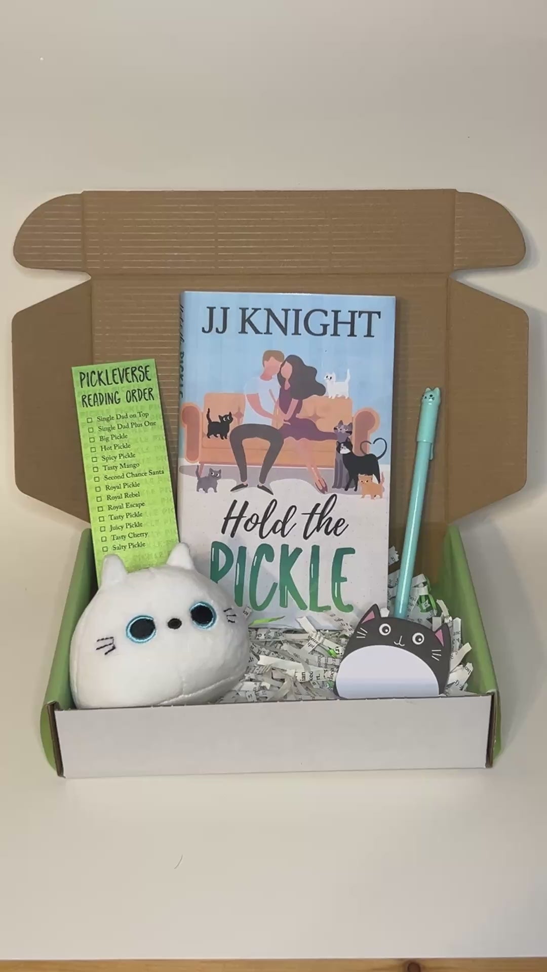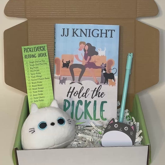 This book box includes the signed paperback, an adorable stuffed kitten from the book, kitty notepad, a precious kitty pen, and a Pickleverse reading order bookmark.