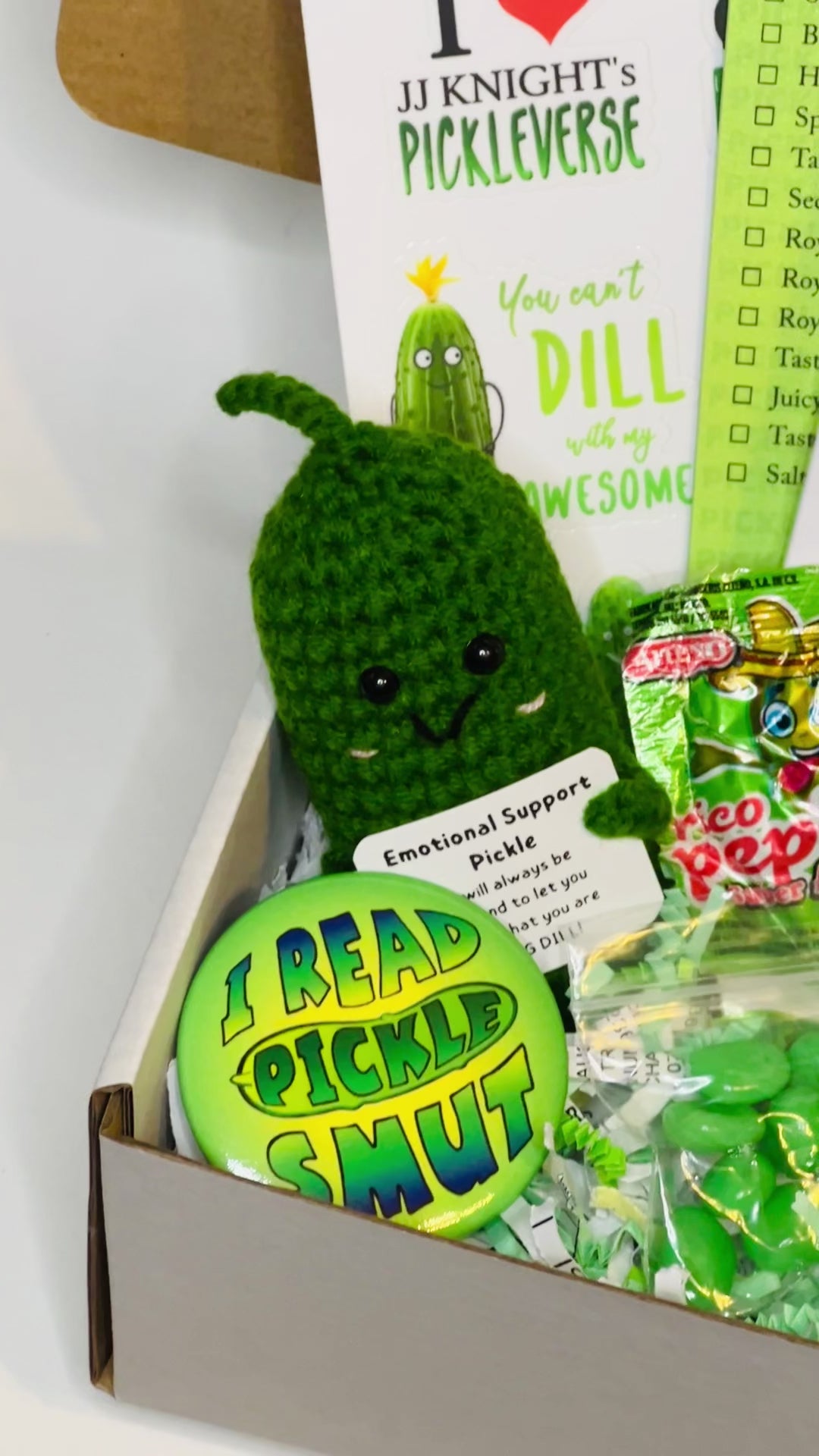- A pickle treat bag with three different types of pickle-flavored candy for you to try (if you dare!)