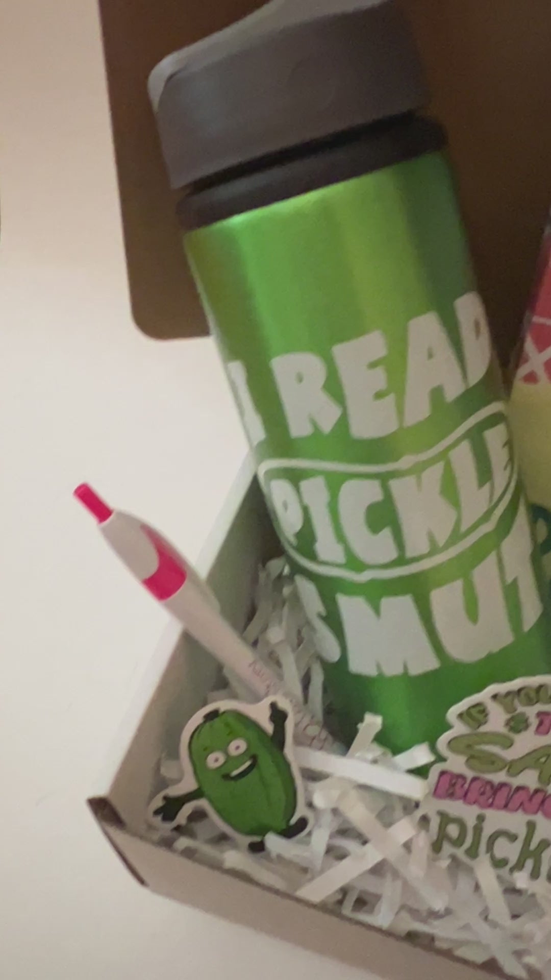 This box is awesome. I love allof the stickers and the pickle tumblercis so great. I absolutely love the pickle series, the stories are awesome too.